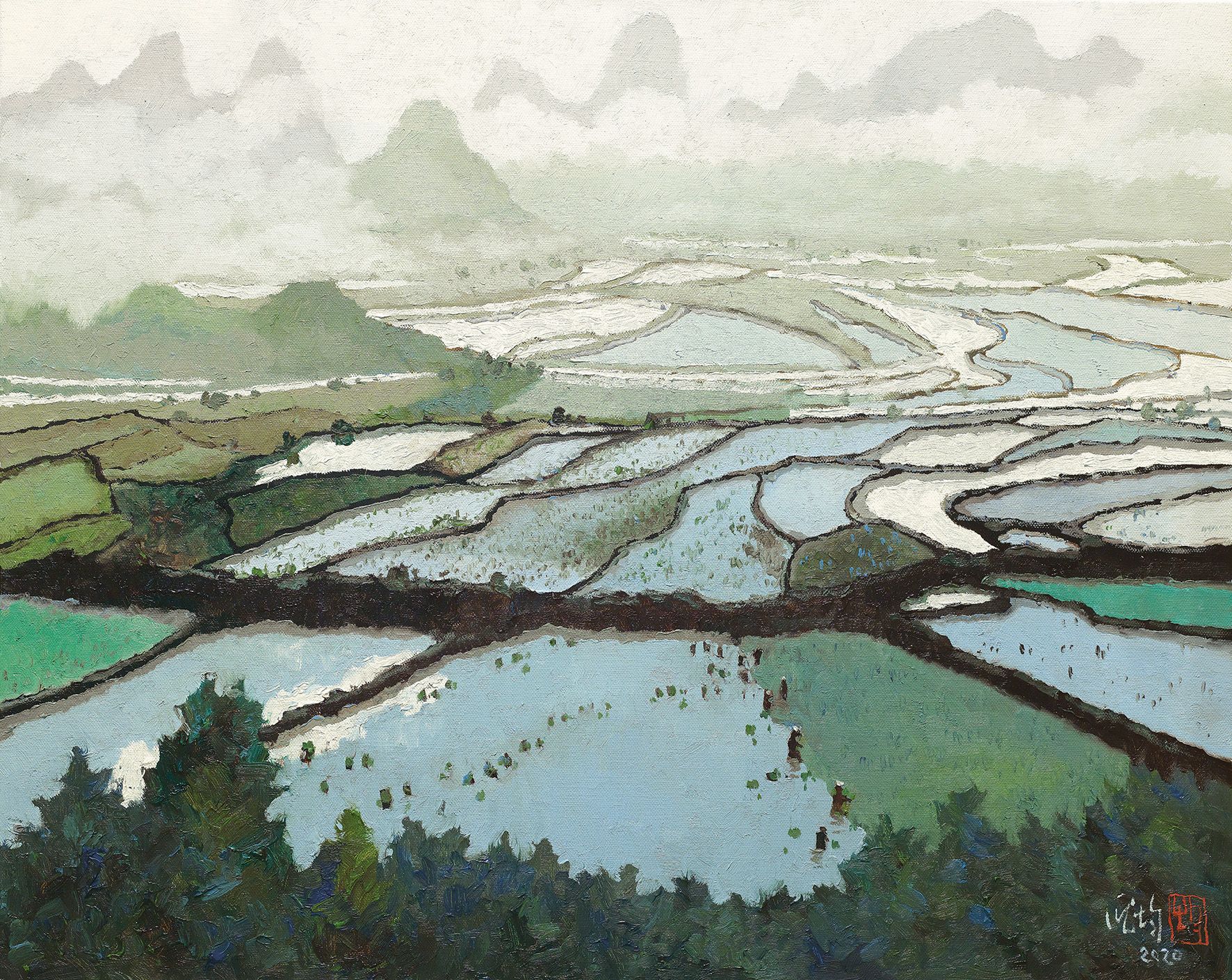 龎均《层层迭迭上远山》2020油彩 画布73 x 91cm