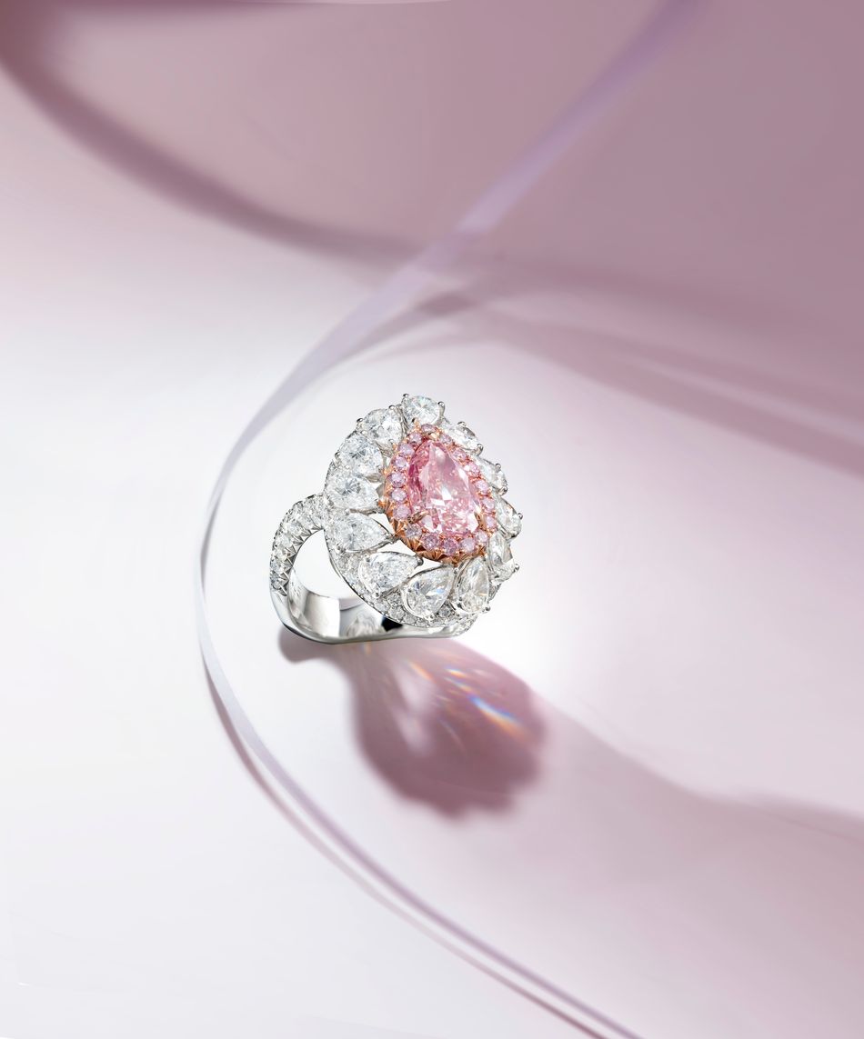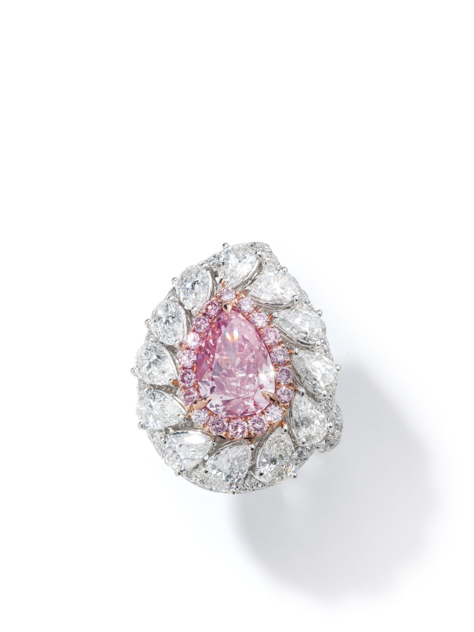 3.01克拉梨形濃彩粉紅色鑽石配鑽石戒指,附GIA證書